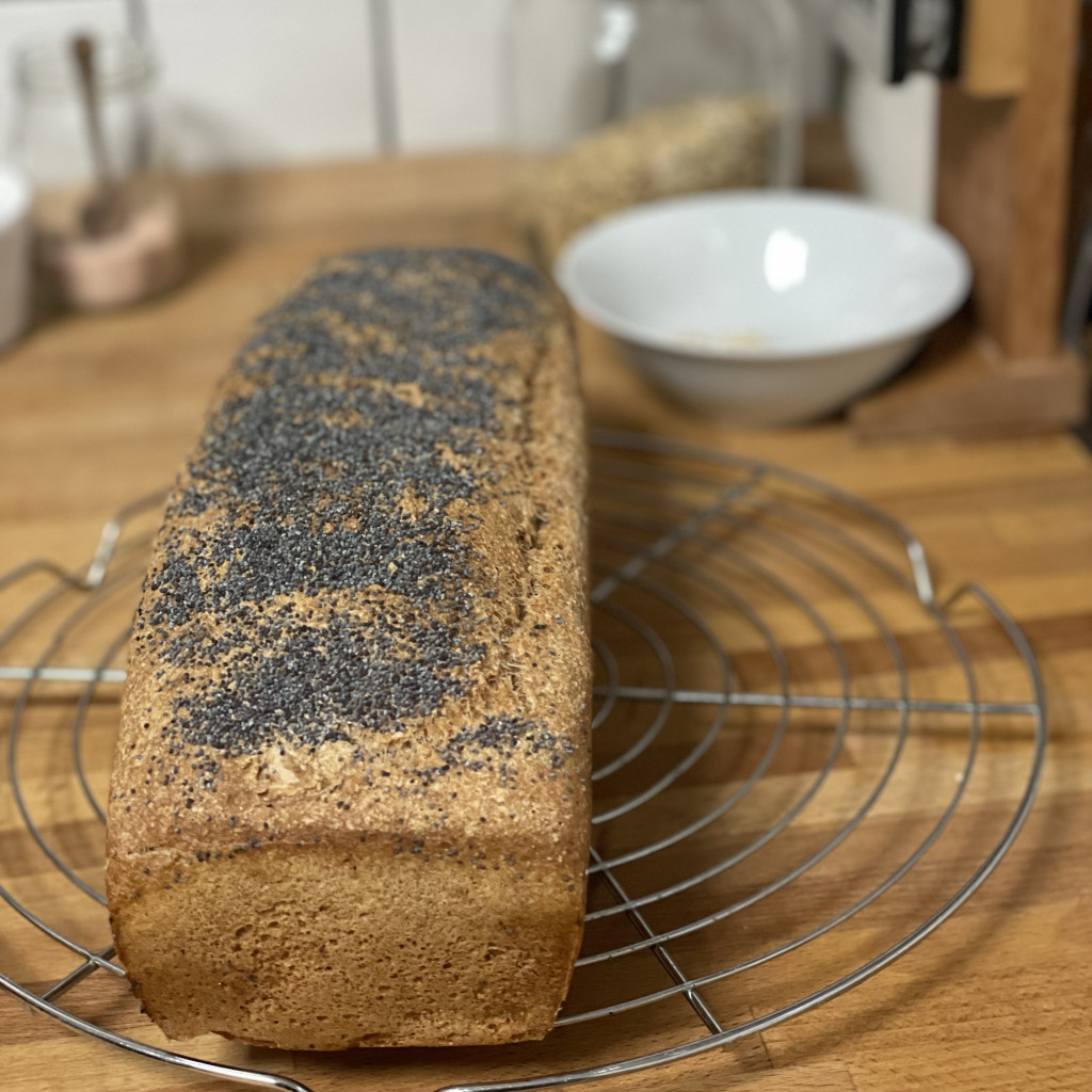 "A kenyerek jó fogadtatásra találtak itthon. Kipróbáltuk pirítósnak és melegszendvicsnek is. De a legnagyobb sikere a kuglófnak volt, így azt a héten meg is sütöttem... Pillanatok alatt elfogyott. Csináltam hozzá friss lekvárt és mogyorókrémet is.